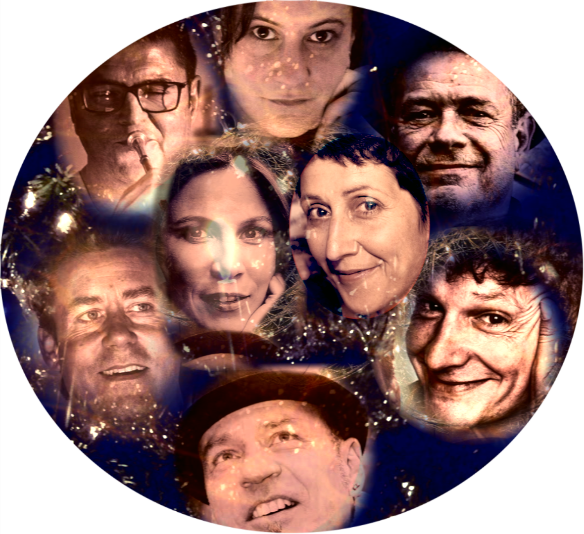 Schriftsteller Urs Augstburger, Kabarettist Christoph Simon, Schauspielerin Barbara Terpoorten, Comedian Sven Furrer, Vokalakrobatin Monika Schärer, Musikkabarettisst Pascal Dussex und Musiker HP Stamm.